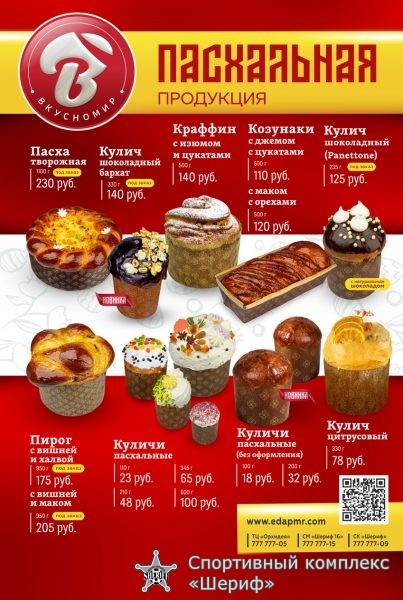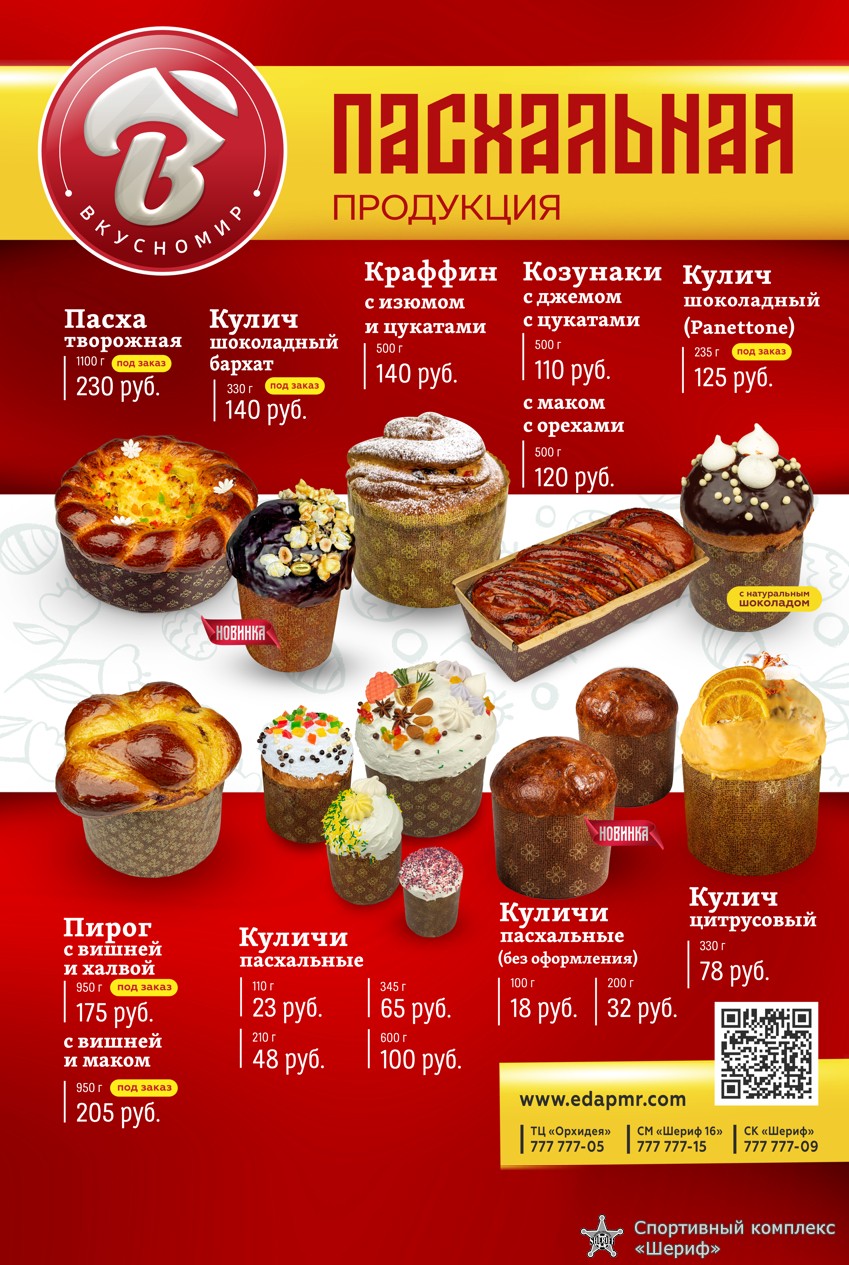 Вы можете подробно ознакомиться с предлагаемой пасхальной продукцией в разделе «Пасхальное меню» на сайте edapmr.com.